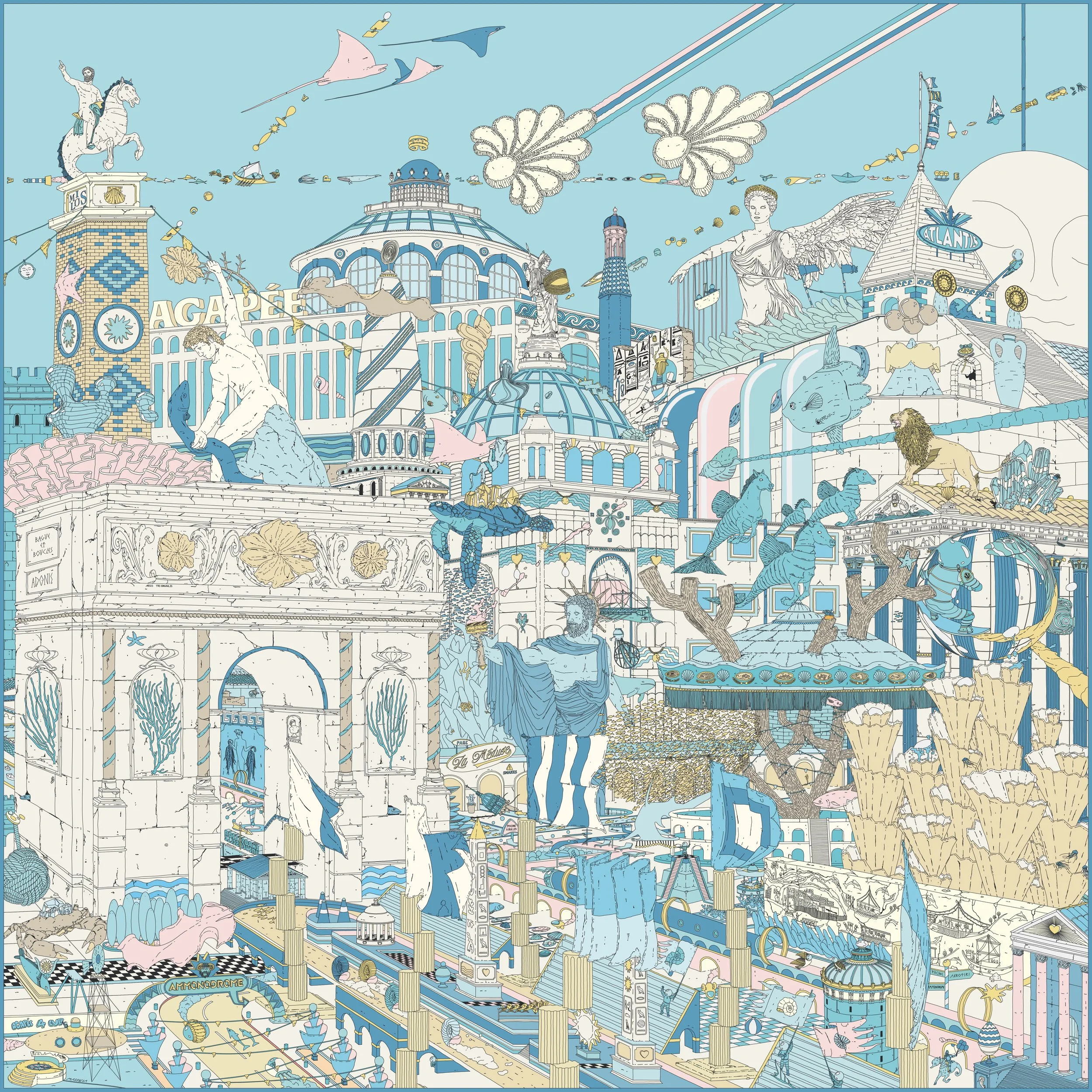 Le dessin ATLANTIS est né d’un long travail de documentation et de recherche sur les civilisations anciennes, animé par le désir de les réunir sous un seul monde imaginaire : Atlantis. Pour le créer, j’ai arpenté des musées, esquissé des dizaines de mondes possibles et rassemblé une centaine (137 pour être précis) de références historiques. Chaque pièce puise dans des symboles anciens, parfois vieux de plusieurs milliers d’années. Les révéler au sein d’une profondeur abyssale est devenu un long voyage artistique initiatique et nourrissant. J’ai caché 49 bijoux, à vous de les trouver ;)